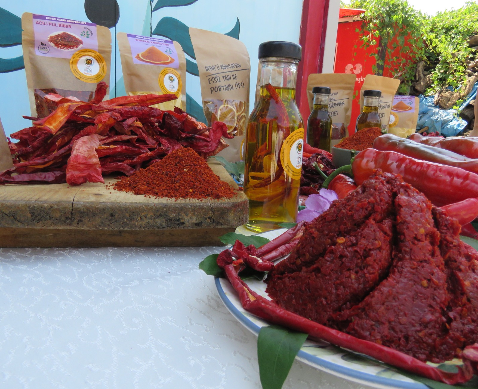 Mahmut Bulut’un yetiştirdiği biberleri satın alarak biber salçasına dönüştüren Defne Kadın Kooperatifi Başkanı Nesrin Deli ise tohumların toprakla buluşmasından tüketiciye gönderilmesine kadar olan bütün üretim süreçlerinde üreticilerle birlikte çalıştıklarını belirtiyor ve pestisitsiz yetiştirilen ürünleri işlemekten duydukları memnuniyeti dile getiriyor.